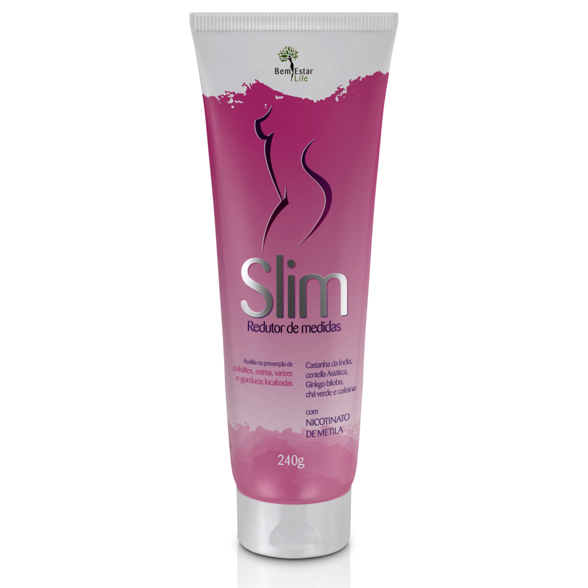 O Gel Slim é composto de extratos de Castanha da India. Nicotinato de metila, gingko biloba, centella asiática, cafeína e chá verde que promovem rubor e aquecimento local além de toda ação para redução das medidas.